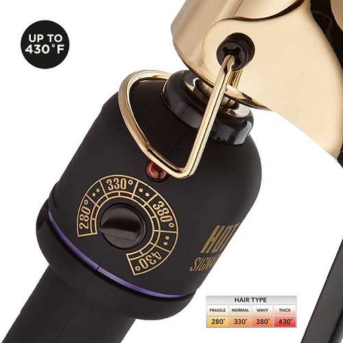 La plancha rizadora dorada de salón de la serie Signature de Hot Tools está diseñada con tecnología dorada para promover resultados duraderos y un estilo rápido, para que pueda peinarse en poco tiempo y disfrutar de sus hermosos mechones todo el día y la noche. Tecnología Pulse: se calienta. Stays Hot mantiene una temperatura constante para que siempre obtengas el rizo perfecto. Un alto alcance de calor de hasta 430 grados proporciona hermosos resultados para todo tipo de cabello, desde fino hasta grueso y en el medio. Consejo: recuerde comenzar siempre con un ajuste de calor más bajo para ayudar a reducir el daño por calor, luego aumente si es necesario. Todos los tipos de cabello requieren diferentes temperaturas.