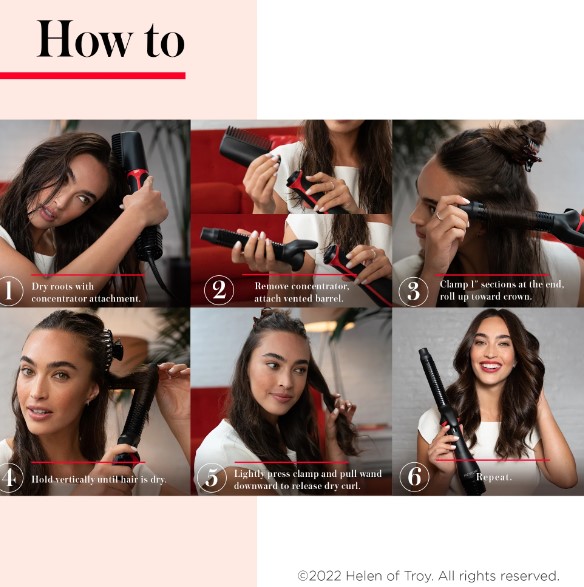 • NORMAS DE SEGURIDAD: El Revlon One-Step Blowout Curls está diseñado solo para salidas de 120V USA, no use un convertidor de voltaje ya que dañará la unidad
