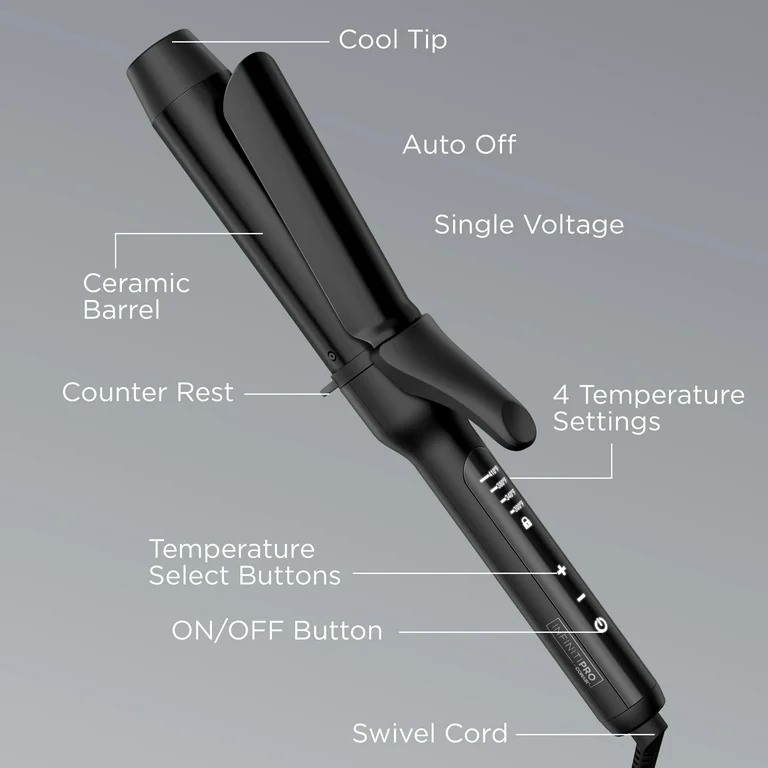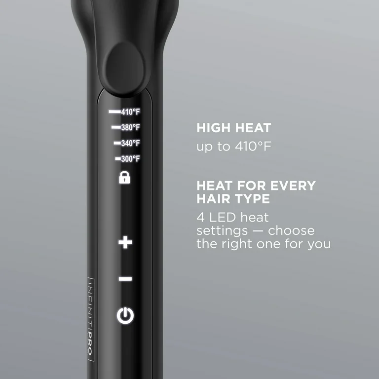 Crea rizos y ondas grandes y hermosos con el rizador de cerámica de 1″ InfinitiPro de Conair, probado en textura. Este rizador de calentamiento rápido tiene un barril revestido de cerámica que distribuye el calor de manera uniforme, por lo que no hay puntos calientes, solo un cabello suave, voluminoso y brillante. Riza con confianza usando la plancha de alta temperatura que se ajusta a todo tipo de cabello, especialmente al cabello con textura natural. Con 4 configuraciones de calor LED (300 °F, 340 °F, 380 °F y 410 °F), es fácil darle forma y volumen al cabello con hermosos resultados estilo salón de belleza. El barril largo se calienta en un instante para un peinado más rápido y resultados sin daños que lucen geniales y duran más. Y la función de apagado automático te brinda tranquilidad. ¡Parece que acabas de salir de la peluquería cuando te peinas en casa con InfinitiPRO de Conair!