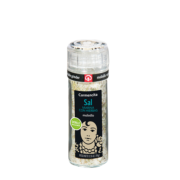 Sal marina mediterránea yodada con hierbas de Carmencita es una combinación de rocas de sal de mar y hierbas mediterráneas, compuesto por: sal marina, romero, orégano, tomillo y mejorana. Una mezcla que no dejará a nadie indiferente. Un sazonador ideal para realzar todos los sabores de tus creaciones. Es ideal para sazonar carnes de res, aves, cerdos y mariscos. Puedes utilizarla durante la preparación de los alimentos o sobre el plato ya elaborado.