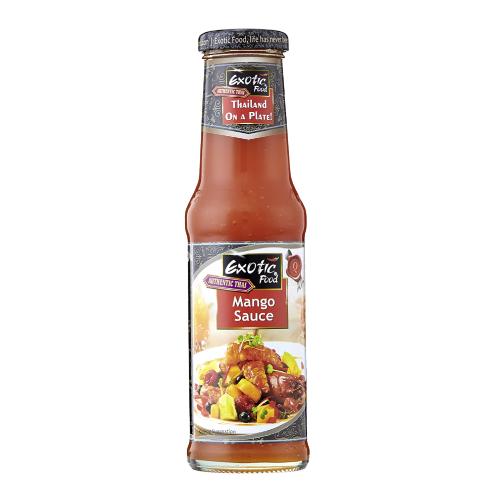 La salsa de mango de Exotic Food tiene un aroma afrutado y sabor agridulce. Es muy usada en platos de pescado y carnes blancas a la plancha. Combina también muy bien con guarniciones de pasta y arroz, o con platos al curry.