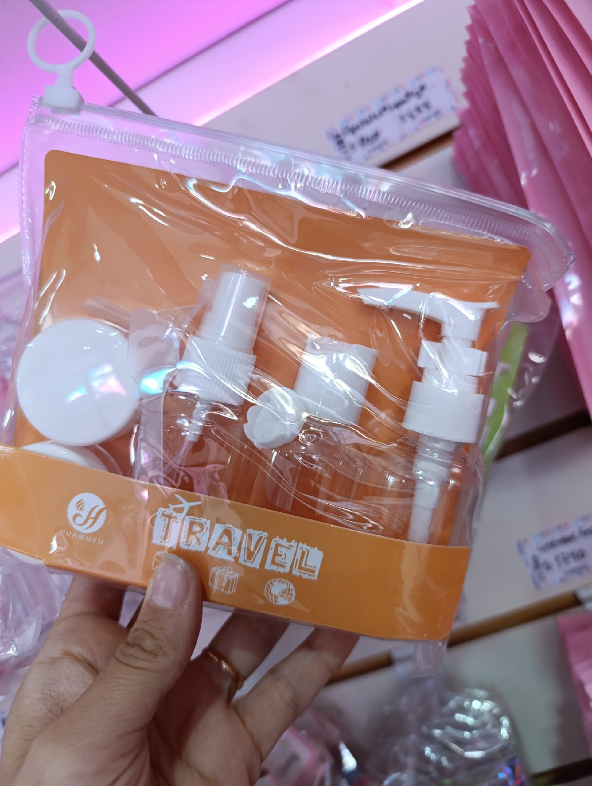 Set Travel x 7 piezas con rociador y potes para cremas.