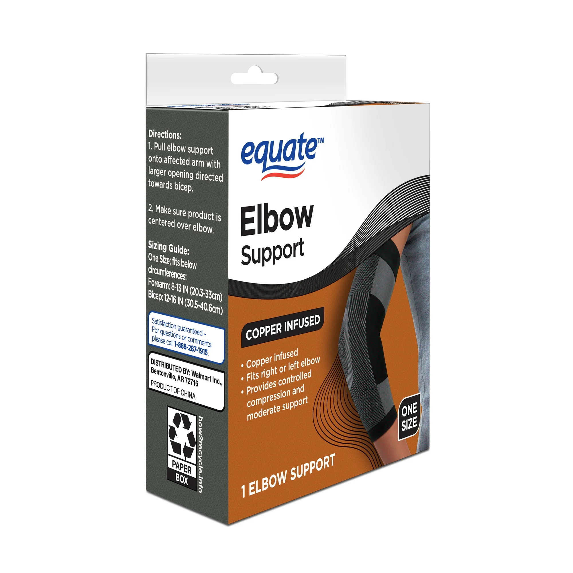 Soporte de codo Equate Copper para compresión y soporte moderado, 1 unidad, talla única