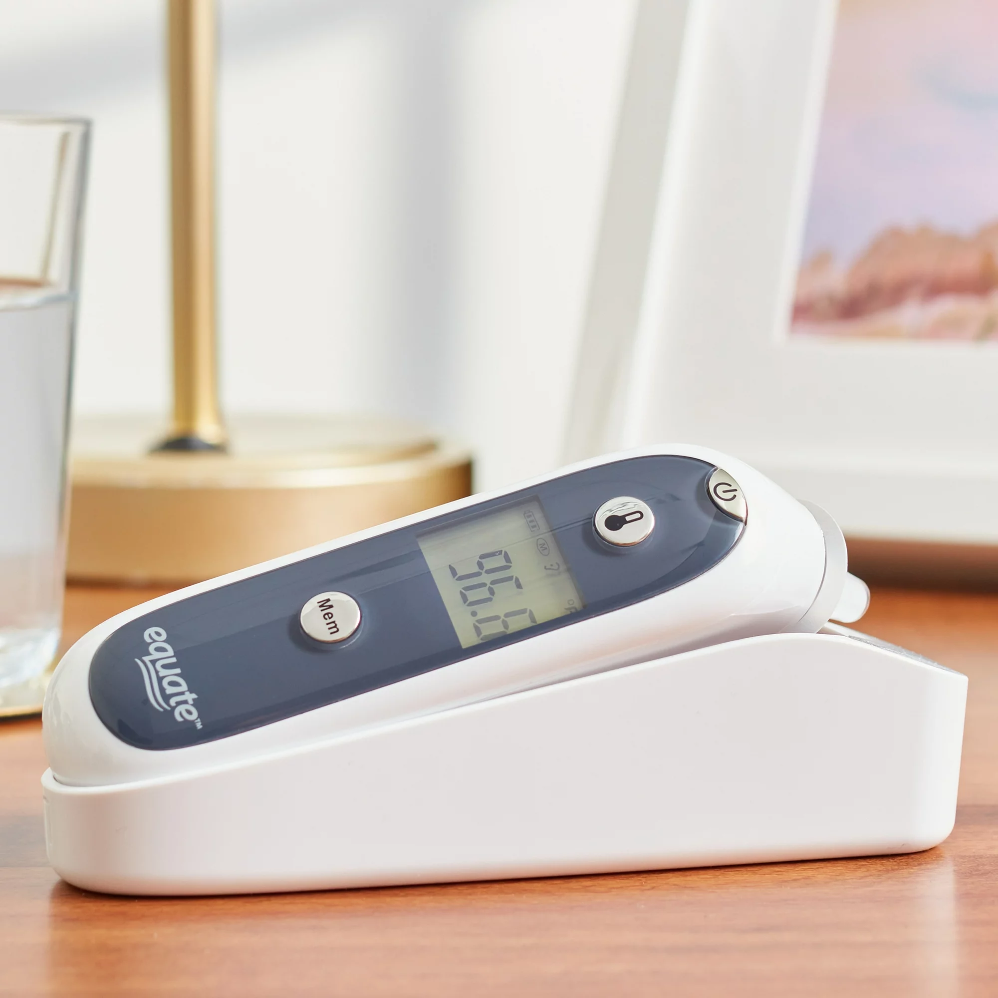 Obtenga una lectura de temperatura rápida y precisa con nuestro termómetro digital intrauditivo infrarrojo de 1 segundo Equate. Bueno tanto para niños como para adultos, nuestro termómetro digital presenta una medición simple en el oído con una alerta de fiebre que suena cuando se detecta una temperatura corporal alta. Los controles simples permiten un uso fácil y la pantalla digital de ahorro de energía con luz de fondo verde ofrece una lectura conveniente en cualquier iluminación, de día o de noche. Podrá estar atento a cualquier problema de aumento de temperatura con la capacidad de nuestro termómetro para memorizar las últimas diez lecturas y siempre sabrá cuándo se necesitan baterías nuevas gracias al indicador de batería baja. Cada paquete incluye nuestro termómetro de oído, un estuche protector para guardarlo, una cubierta protectora para la sonda, cinco filtros desechables para la tapa de la sonda, un manual del usuario y dos baterías alcalinas AA. Nuestro termómetro digital intrauditivo infrarrojo de 1 segundo Equate hace que tomar la temperatura de cualquier persona sea rápido y fácil.