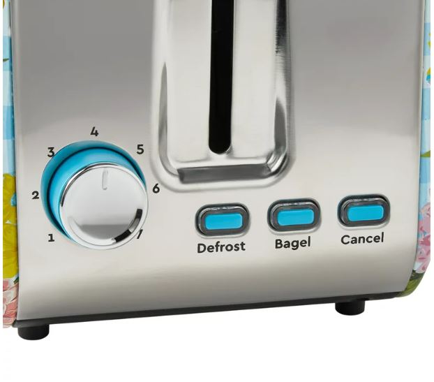Ya sea que le guste el pan ligeramente tibio o extra crujiente, la tostadora de 2 rebanadas The Pioneer Woman Sweet Rose lo tiene cubierto. Su clásico temporizador giratorio y tres funciones de botón, cancelar, descongelar y bagel, lo hacen perfecto para tostar bagels, waffles, muffins ingleses y más. La opción de descongelación maneja convenientemente algunos de sus panes congelados favoritos, como postres tostados y gofres, mientras que la opción de bagel saca sin esfuerzo la perfección del bagel tostado. Cuando el pan está listo, la función de impulso de elevación alta de esta hermosa tostadora hace que sea más fácil recuperar el pan mientras mantiene sus manos a salvo del calor. Hacer sándwiches tostados, picatostes, pan rallado y bocadillos se convierte en una tarea fácil cuando llevas a casa la tostadora de 2 rebanadas The Pioneer Woman Sweet Rose.
