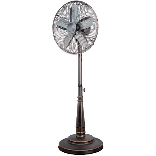 ¿Necesita refrigeración mientras viaja? El Optimus de 3 velocidades y 16 pulgadas. El ventilador portátil con soporte oscilante retro es una forma inteligente, segura y conveniente de refrescarse durante los calurosos meses de verano. Te encantará el aspecto del acabado en bronce frotado con aceite de este ventilador, su estilo de la vieja escuela, sus graves escalonados y su oscilación de 85°. Utilice este ventilador clásico en su dormitorio, oficina o sala de estar.