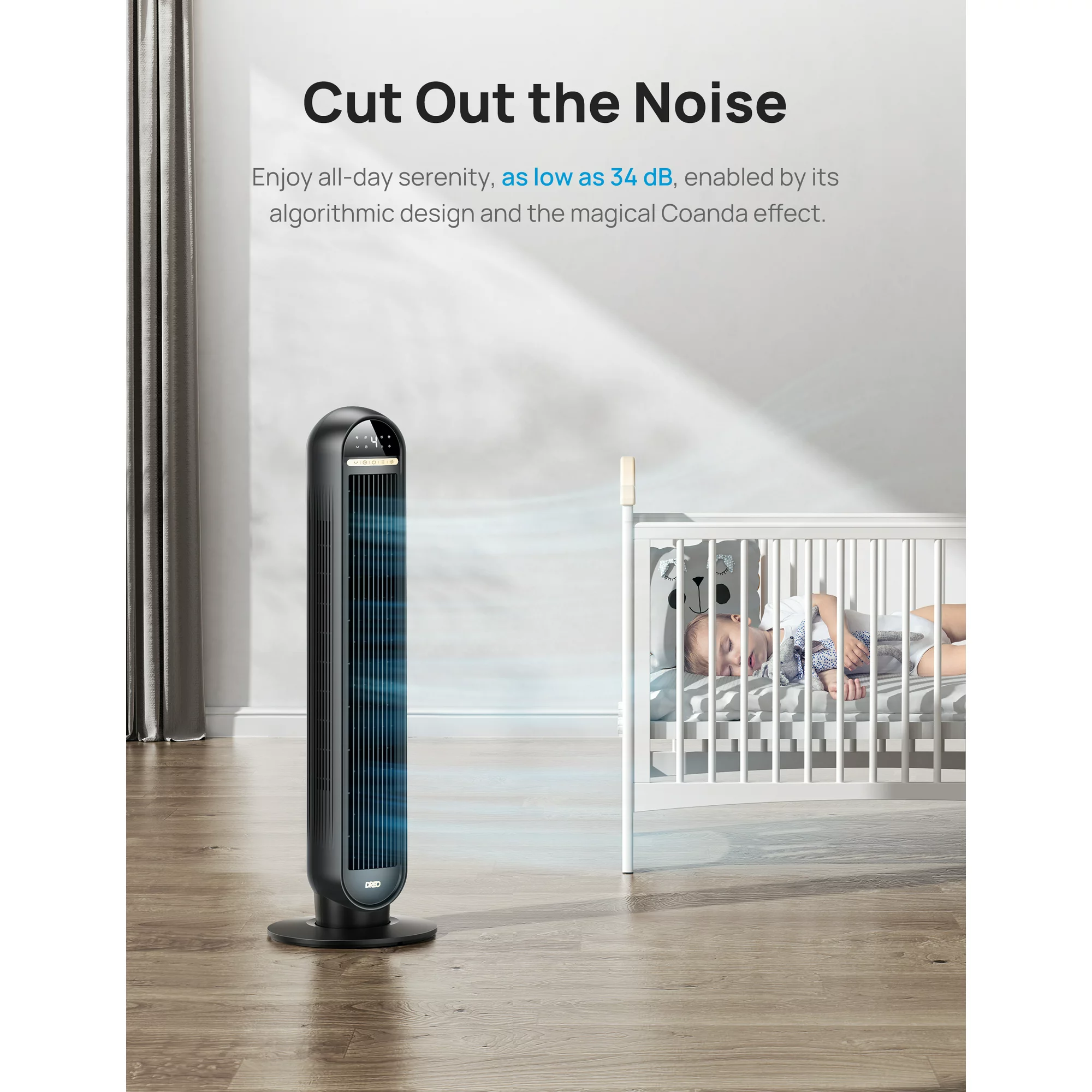 Elimina el ruido tan bajo como 34 dB. Fácil de limpiar y seguro de usar Ventilador de torre con control remoto
