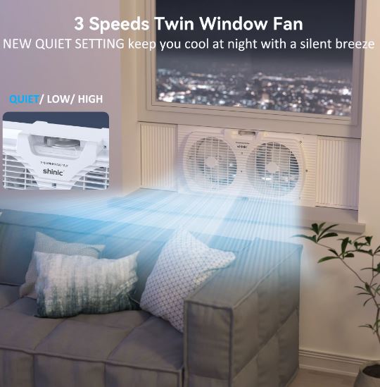 Diseñado para brindar la máxima versatilidad, este ventilador portátil de doble ventana Shinic ofrece tres velocidades que pueden generar una fuerte brisa o hacer circular el aire en su habitación con facilidad. La salida se controla con el dial manual, lo que le permite ajustar el flujo de aire con un simple giro del interruptor. Este ventilador de ventana de dos aspas no solo puede llenar la oficina, el dormitorio o la sala de estar de su hogar con aire fresco, sino que también puede invertirse para expulsar el aire caliente y viciado de su hogar.