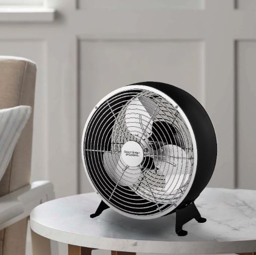 Mantenga el nivel de comodidad perfecto en casi cualquier habitación con el ventilador de tambor de mesa retro de 9 pulgadas de Better Homes & Gardens. El ventilador, con su tamaño compacto y estilo retro elegante, combina perfectamente con varios tipos de entornos interiores y está diseñado para ocupar un espacio mínimo en escritorios, mesas, estantes y otros espacios. Este ventilador es perfecto para habitaciones grandes y pequeñas, incluidos dormitorios, salas de estar, estudios, oficinas, dormitorios y más. El ventilador viene completamente ensamblado fuera de la caja para que pueda usarse de inmediato y mide 5.3″ de profundidad x 11.54″ de ancho x 12″ de alto.