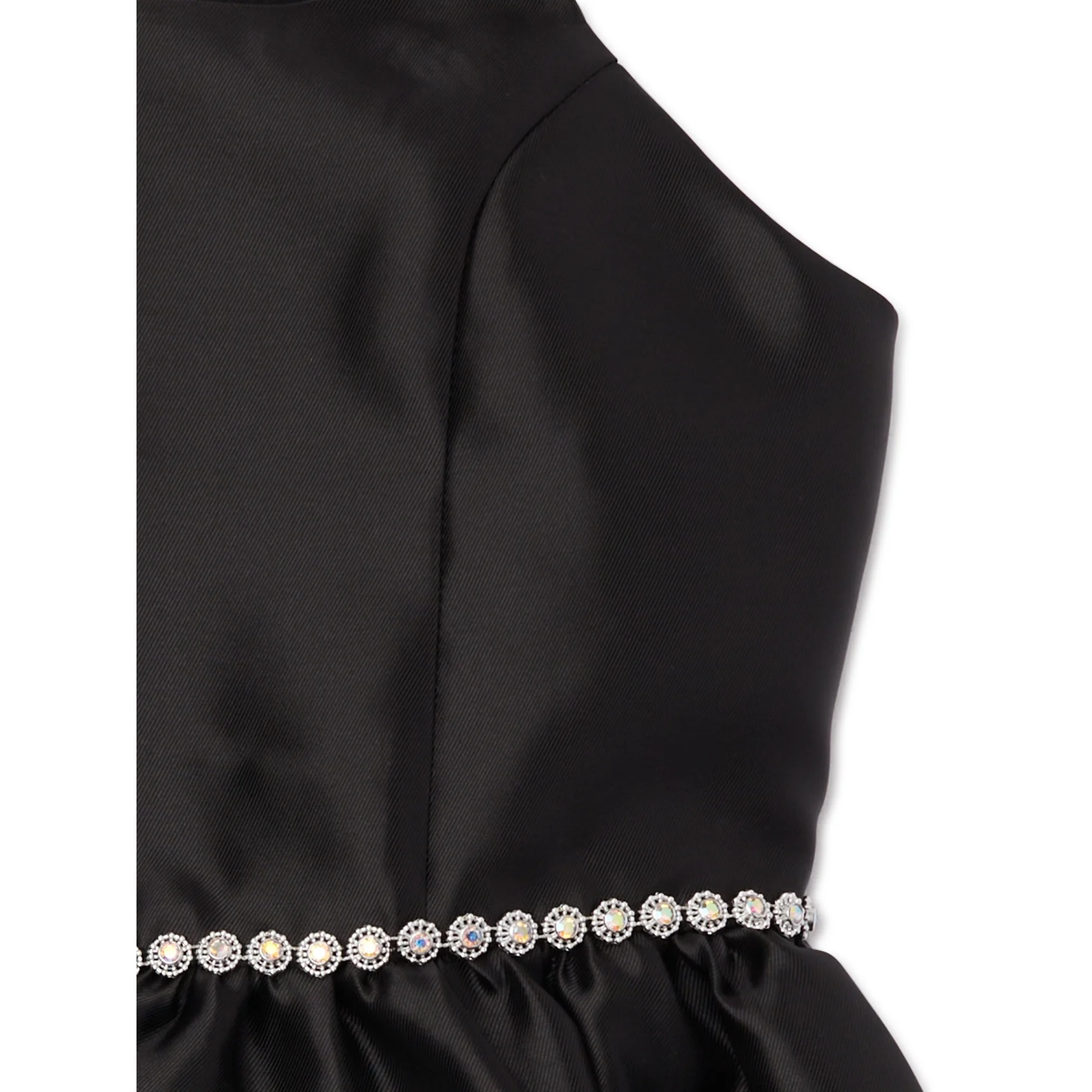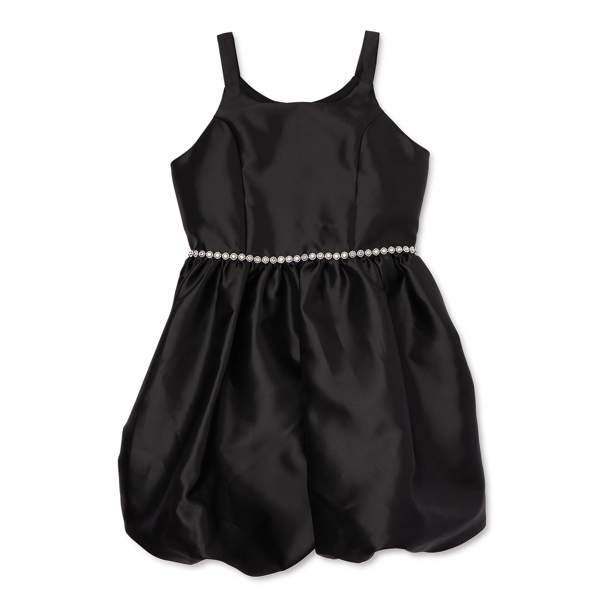 Glam ella con este impresionante vestido de burbuja de un montón de amor por sin palabras. Este hermoso vestido está hecho de elegante tela de raso con un corpiño ajustado y diseño sin mangas. Una cintura enjoyada recorta el look con un toque extra divertido que le ayudará a brillar y brillar en tu próxima ocasión especial.